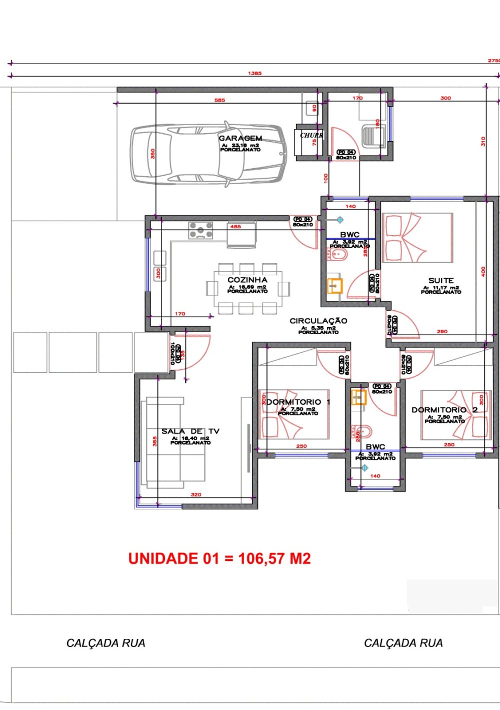- Área Construída: 106,75 m²