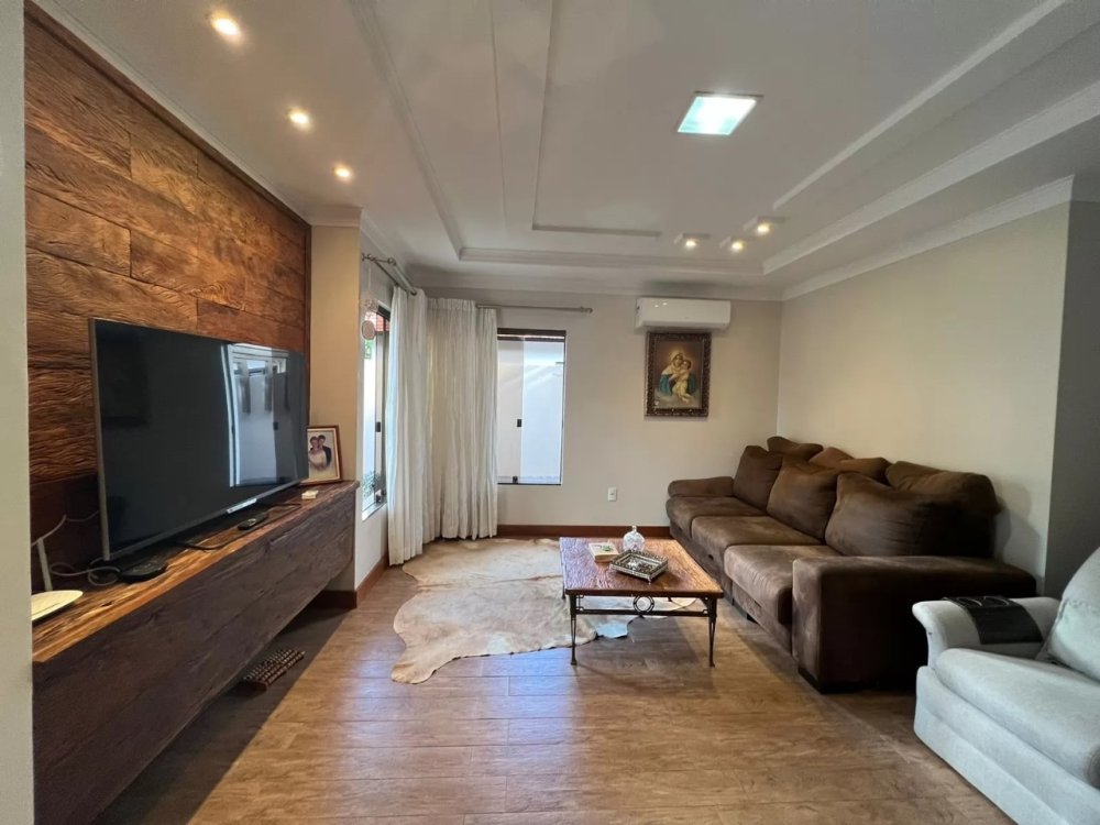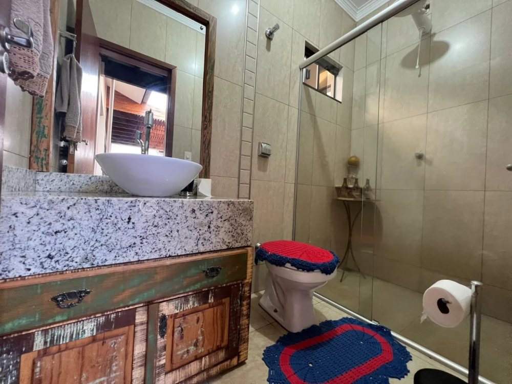 Localizado no Jardim Urbano em Palotina/PR, esse imóvel possui aproximadamente 250m2 de área construída erguida sobre um terreno de 472,50m2. A sua distribuição interna é dividida em, uma sala de estar, sala de jantar, uma cozinha, três banheiros, dois quartos, uma suíte, edícula com churrasqueira, depósito, porão, garagem para três carros, 16 plácas fotovoltaica