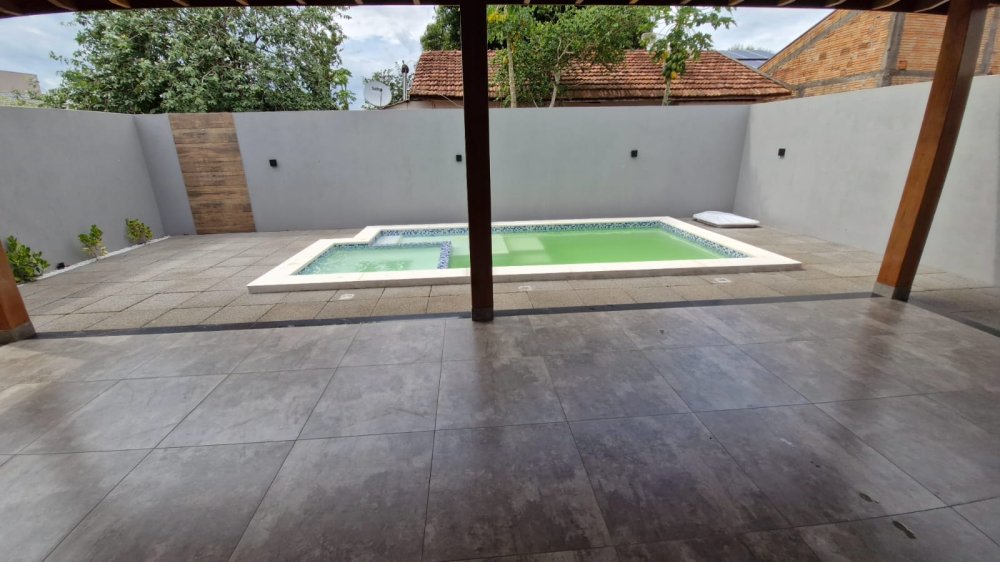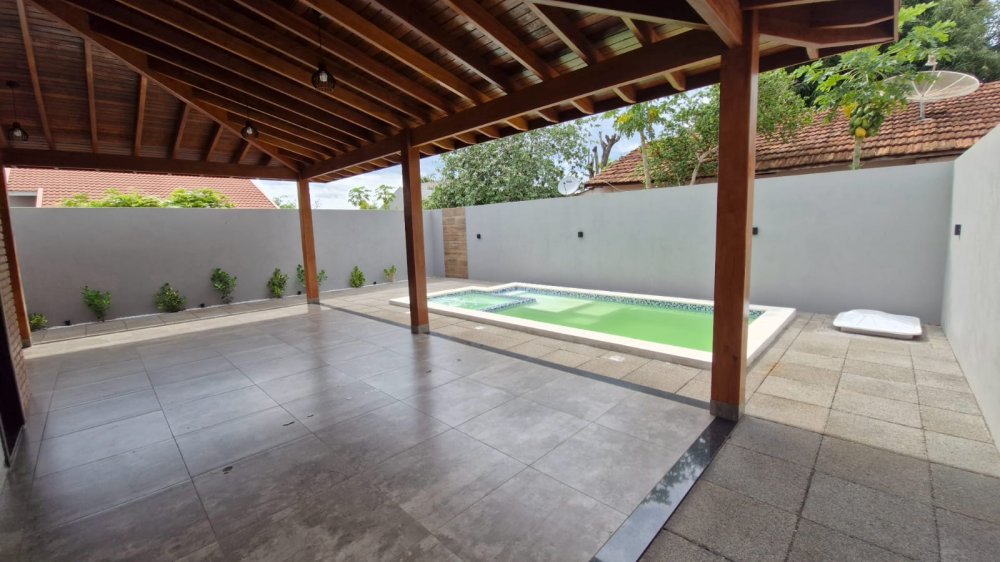 LINDA CASA COM PISCINA DE 02 QUARTOS, UMA SUÍTE COM CLOSET.
