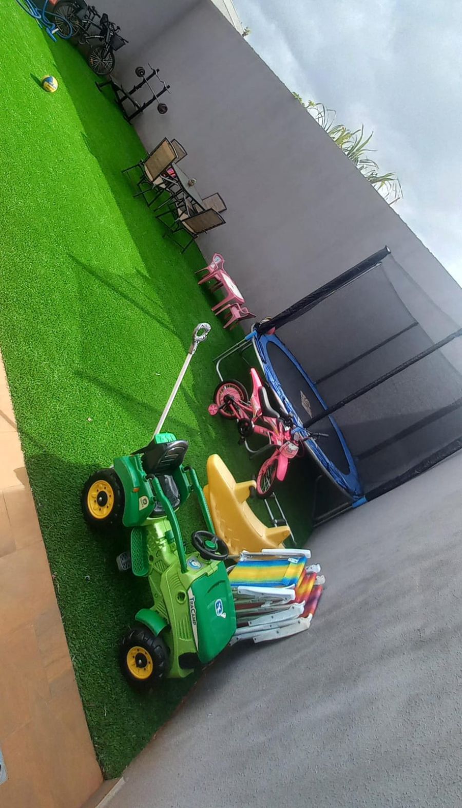 Fica no imóvel, todos os móveis planejados, closet, cozinha, painel TV, mesa da edícula, casinha infantil, 2 aparelhos de ar condicionado, Cristaleira, 2 camas box, 3 guarda roupas, fogão, geladeira, micro-ondas, sofá de sala, rack.